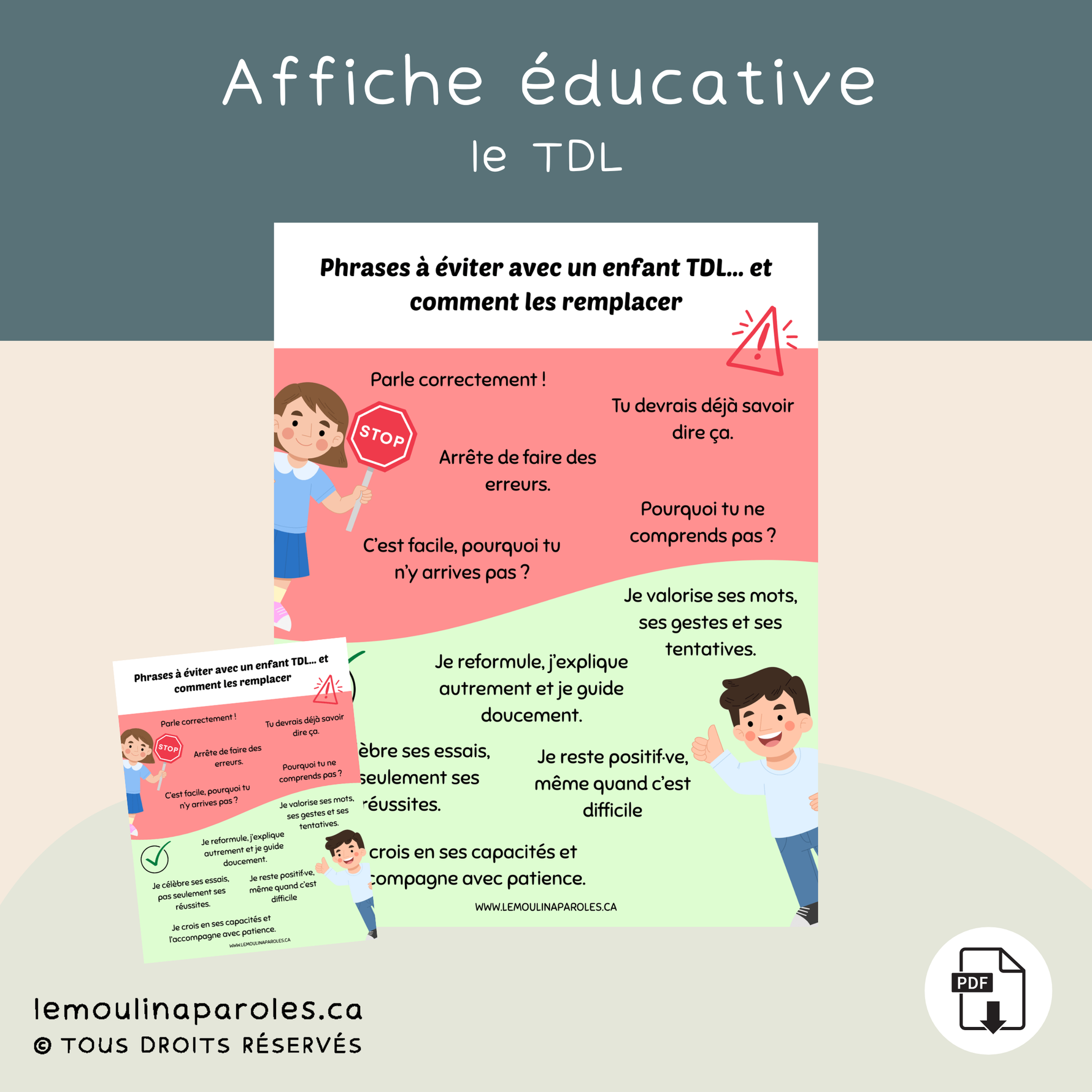 Transformez vos interactions avec un enfant TDL grâce à cette affiche pratique !