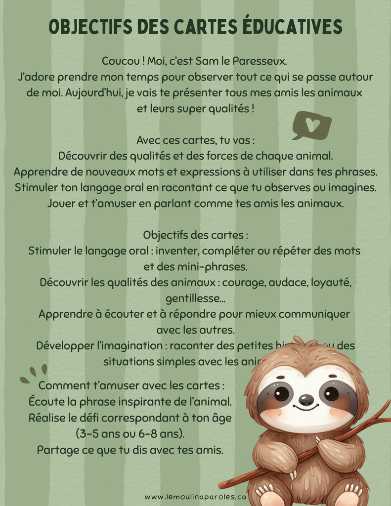 Sam le Paresseux et ses amis (3-8 ans) - Défis langagiers