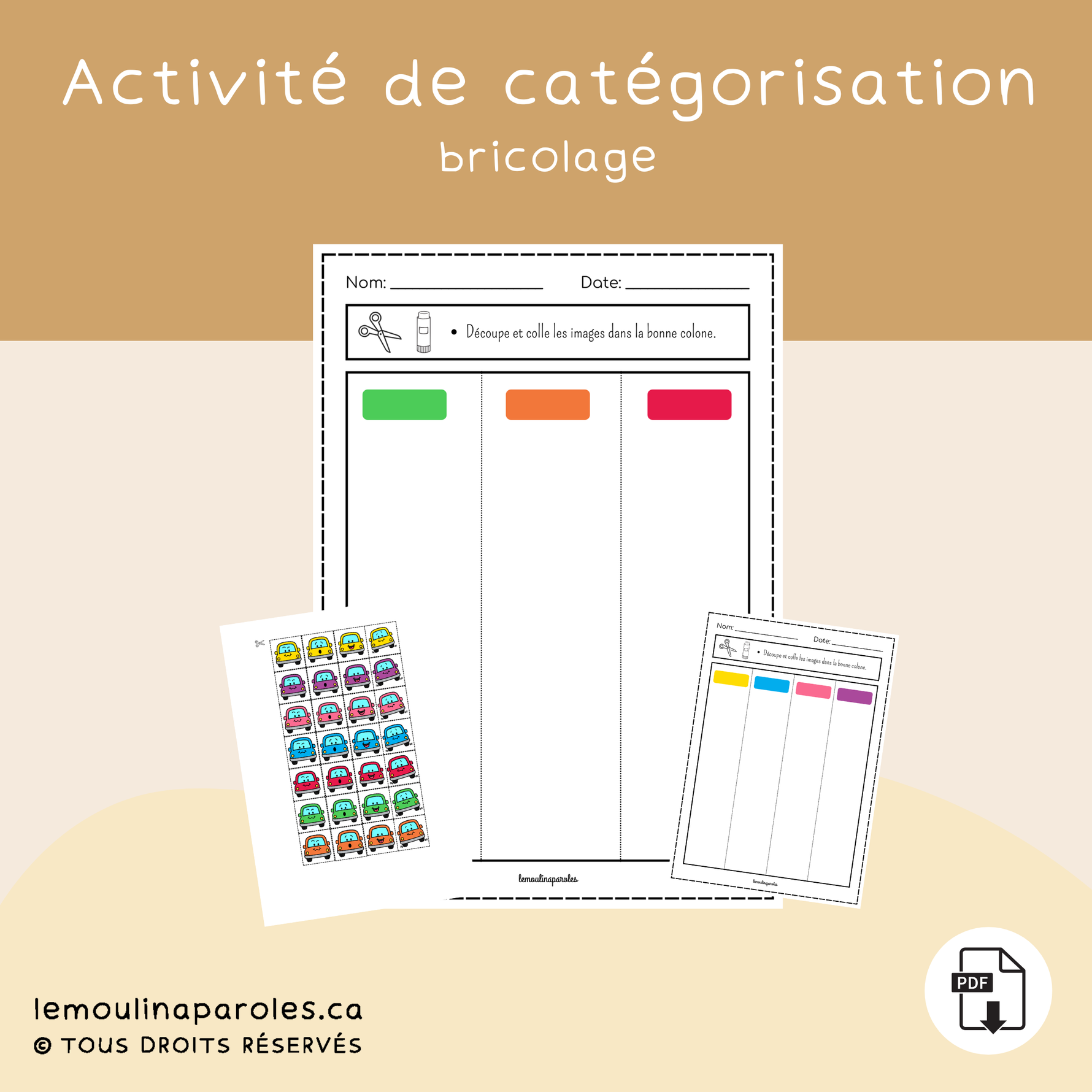 Objectifs : Motricité fine, reconnaissance des couleurs, découpage