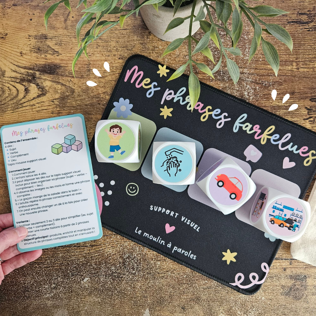 Mes phrases farfelues – Dés éducatifs pour travailler la structure de phrase | Orthophonie & Langage