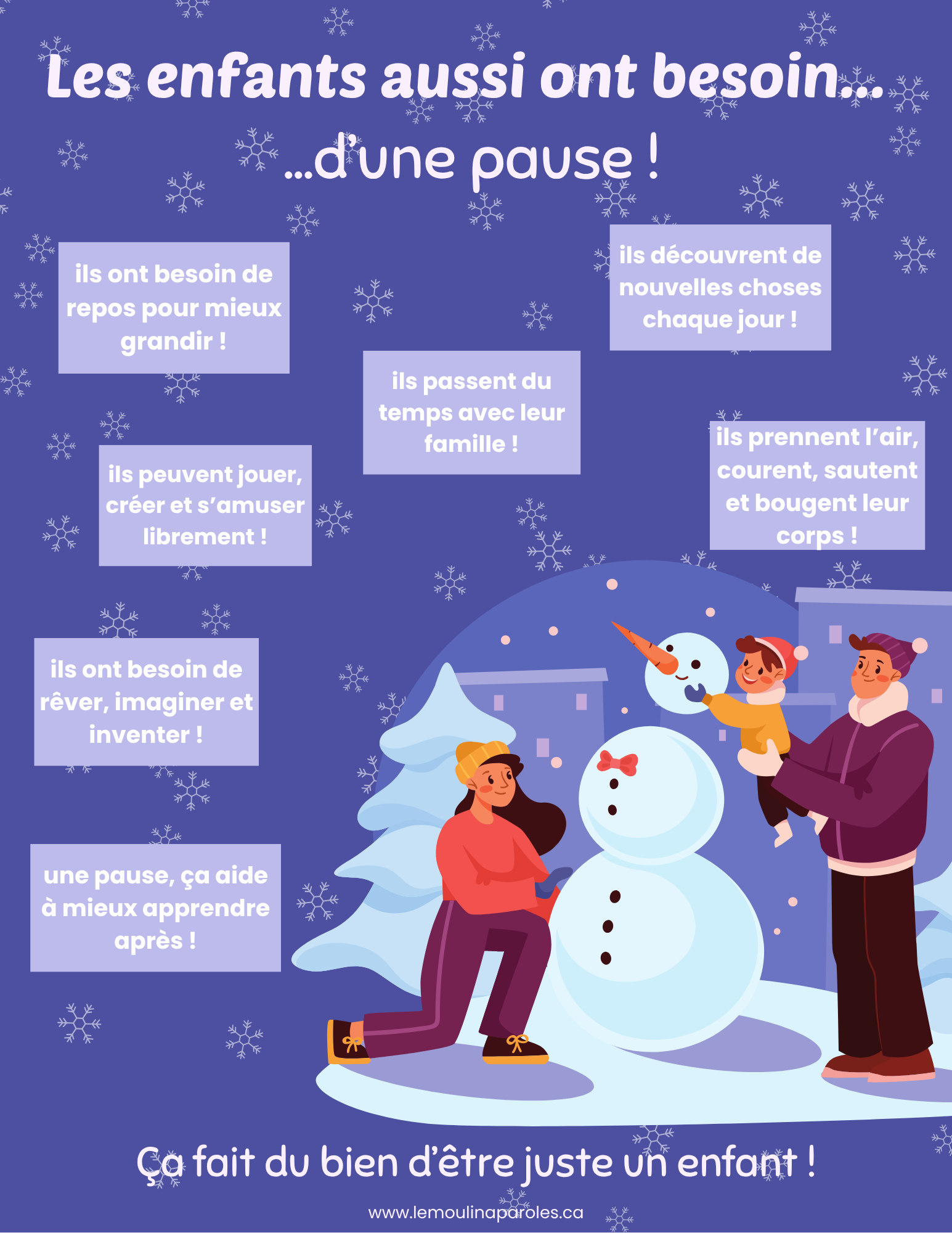 Cette affiche ludique rappelle que chaque enfant a besoin de moments de pause pour bien grandir, apprendre et s’épanouir.
