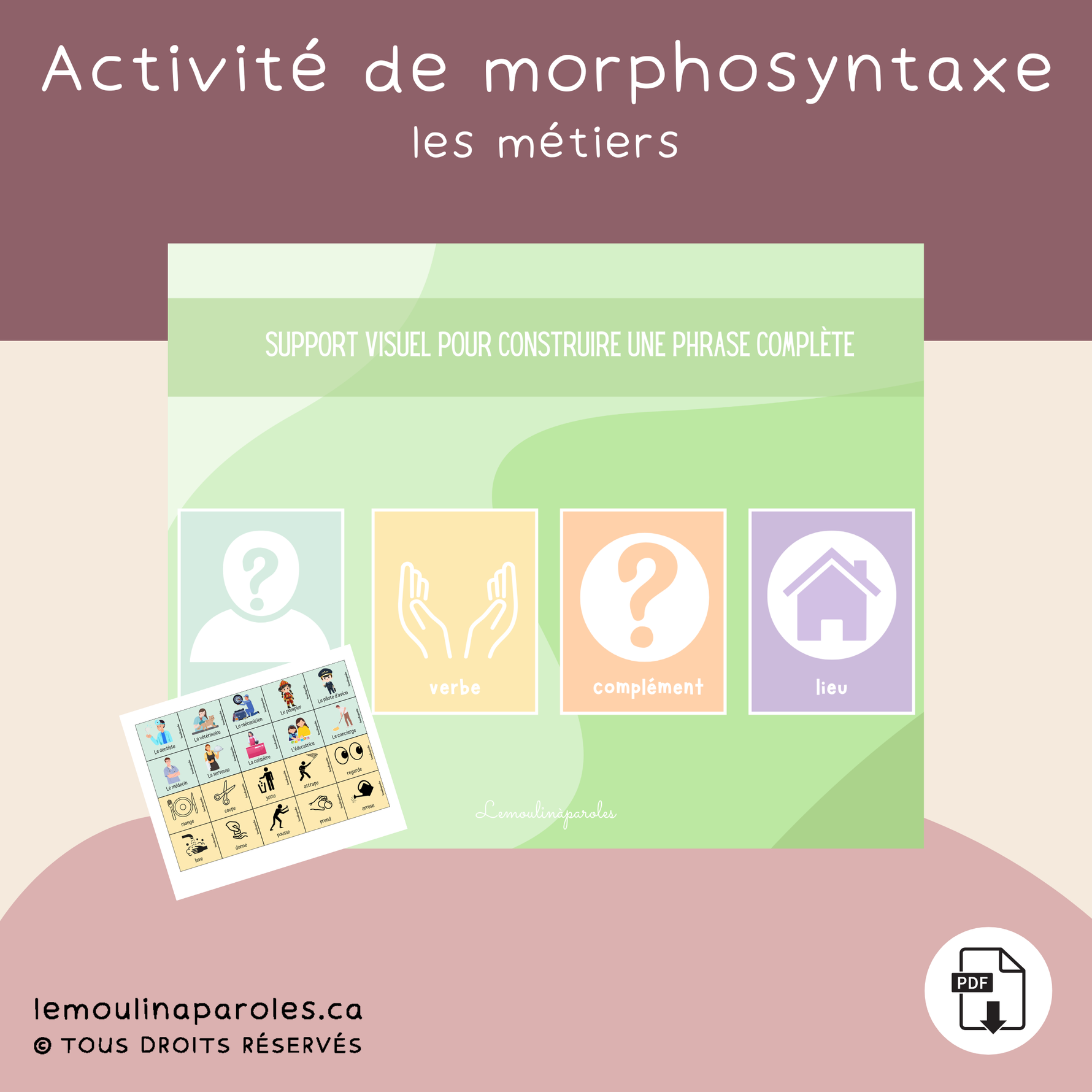Objectif : Construction de phrases de type sujet-verbe-complément-lieu.