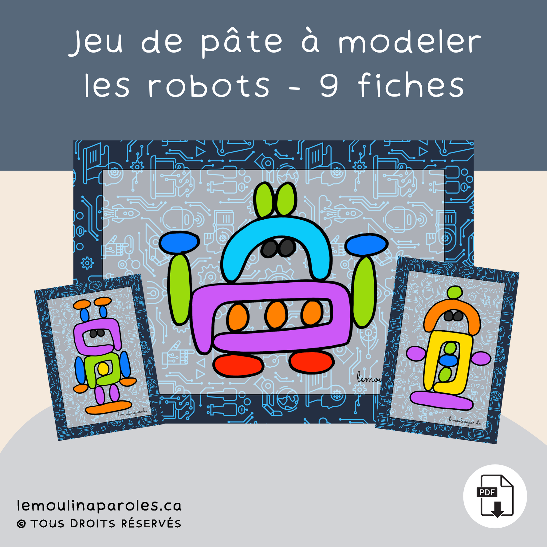 Atelier de pâte à modeler – Les robots (9 fiches PDF à imprimer)