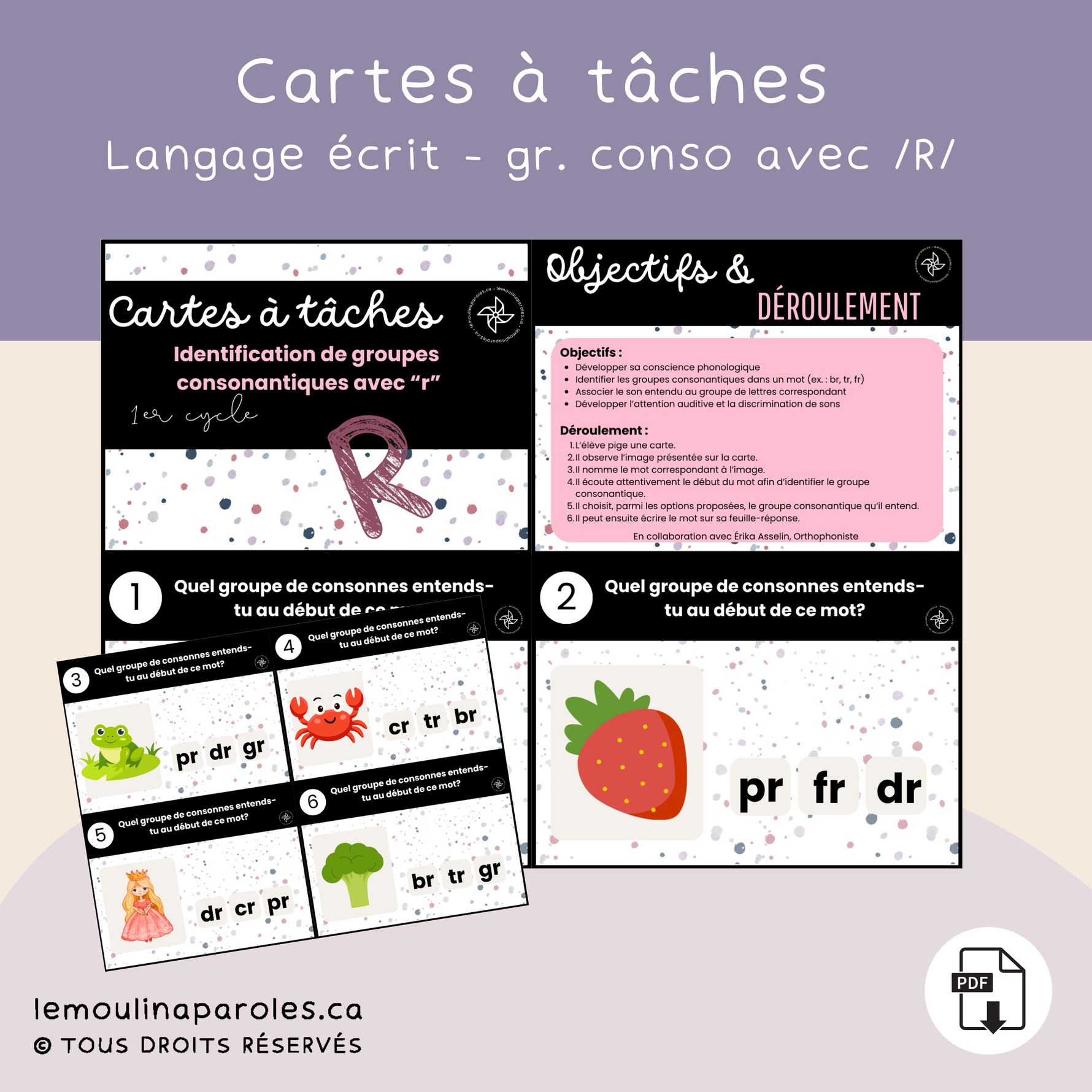 Cartes à tâches – Groupes consonantiques avec “R” | Conscience phonologique (1er cycle)