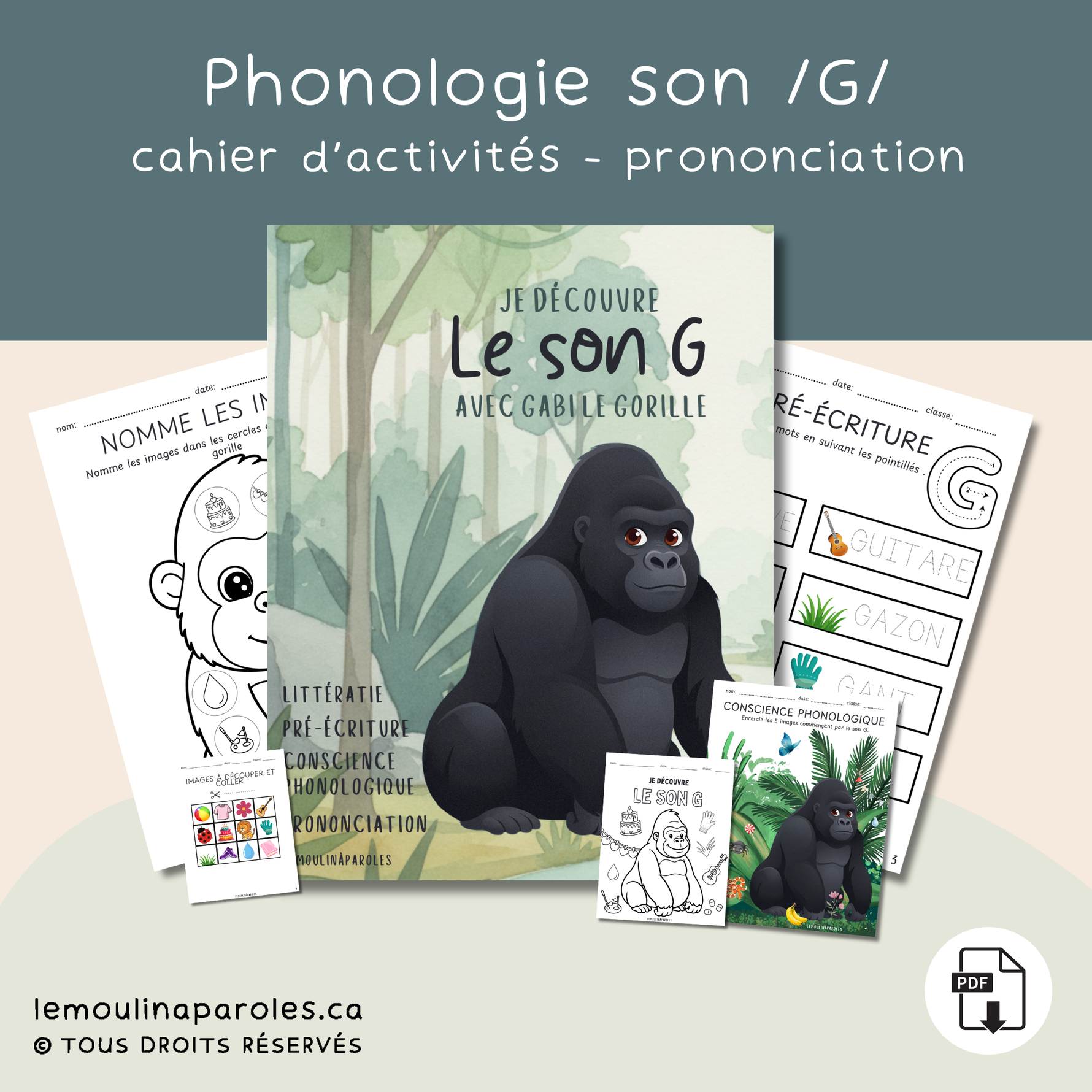 Cahier éducatif – Je découvre le son G avec Gabi le gorille 🦍✨