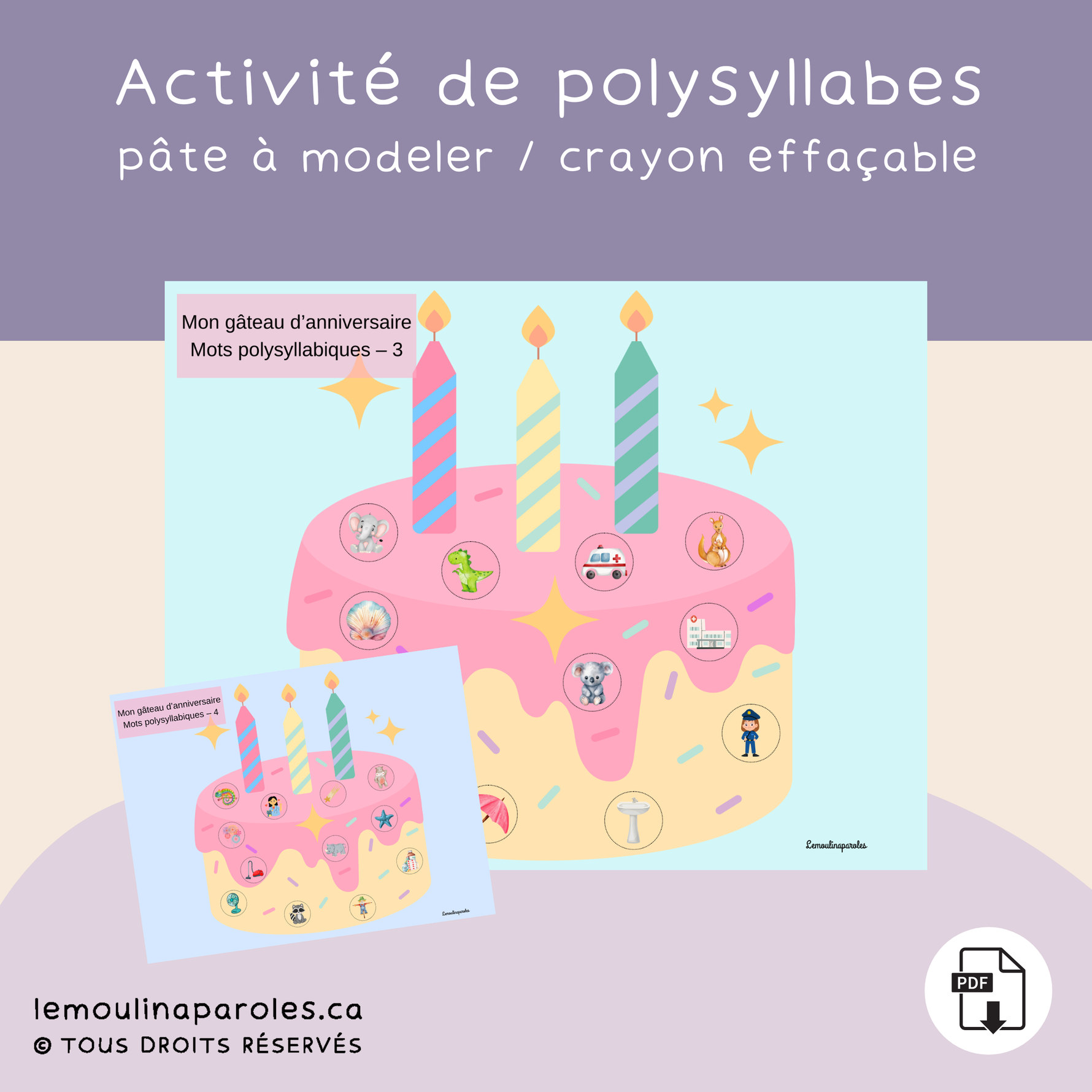 Mon gâteau d'anniversaire - 3 et 4 syllabes