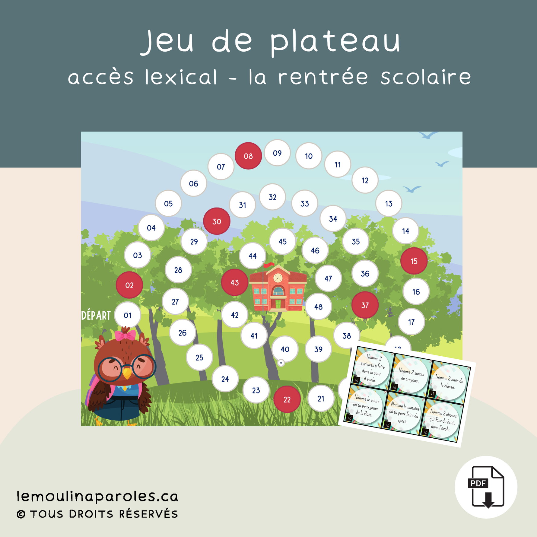 • Plateau du jeu : Le chemin de la rentrée avec Olive (fichier PDF).