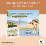 Objectif : Compréhension et production de la relative « QUI », support visuel inclus.