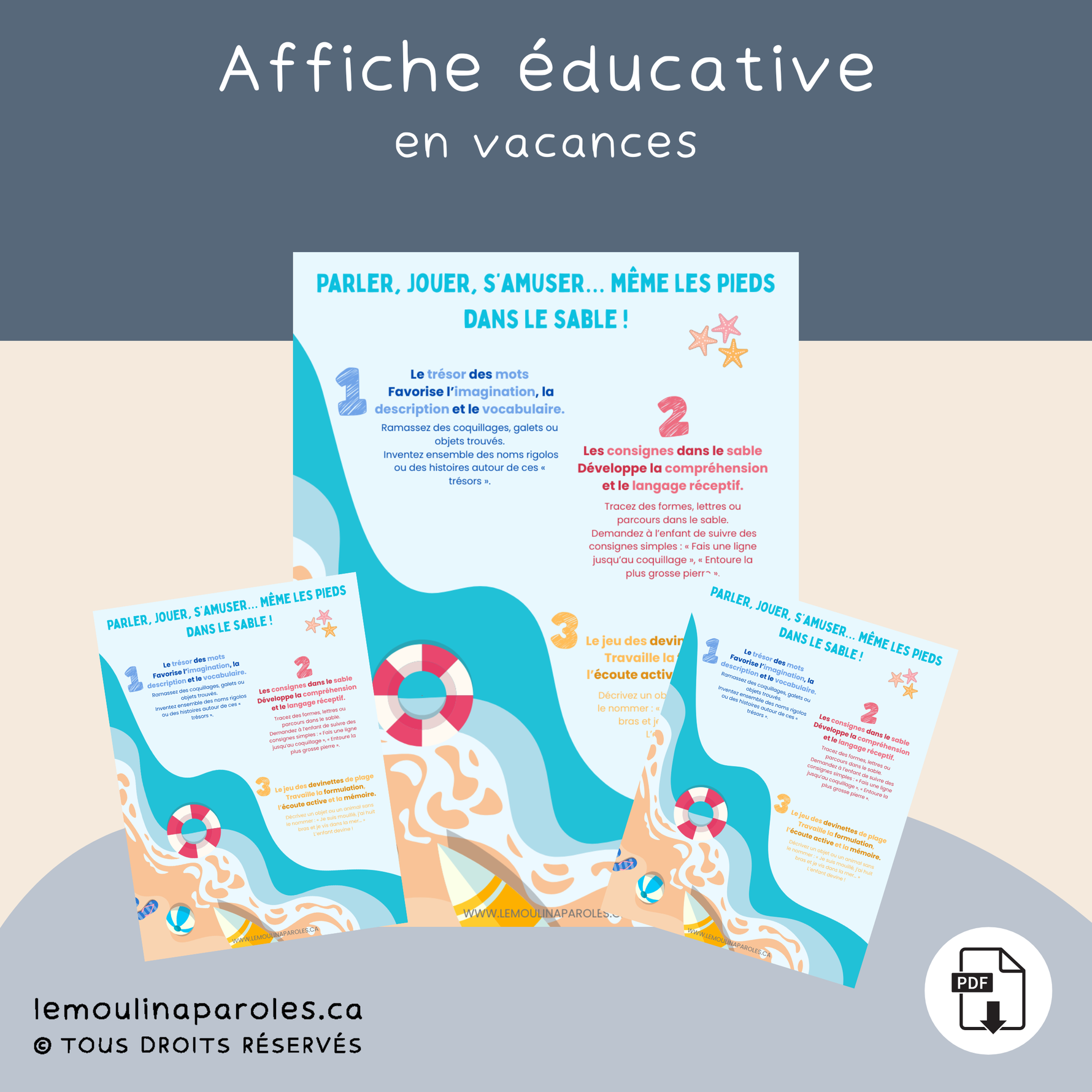 Affiche â 3 astuces pour stimuler le langage Ă la plage