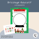 Découpe et colle les images qui se trouve sur la page suivante en nommant ce que tu vois sur la boule de neige.