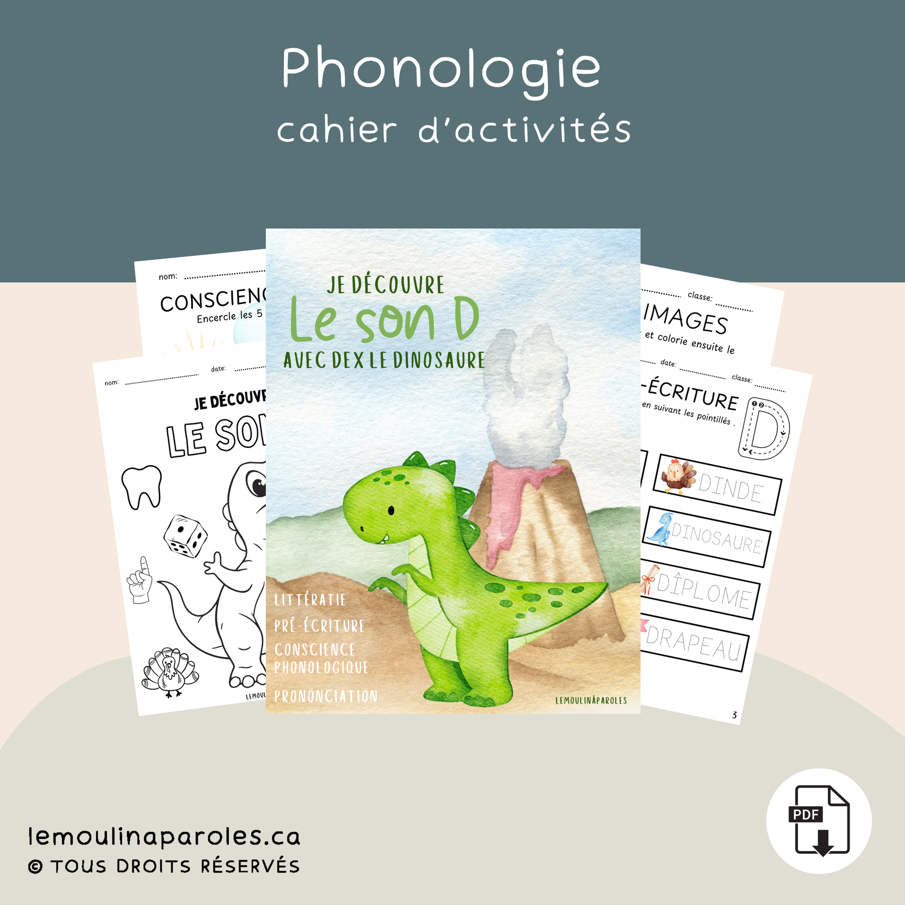 Stimulez le langage et la conscience phonologique avec notre cahier de phonologie sur le son D !